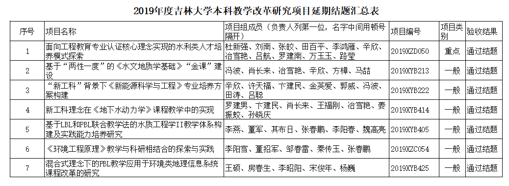 根据学校《关于公布2021年吉林大学本科教学改革研究项目中期检查通过名单及2019年延期项目结项工作安排的通知》通知要求,学院于20221011日上午组织了2019年立项的教改延期项目结题评审答辩会,共有7个项目参加答辩,全部通过,具体如下: