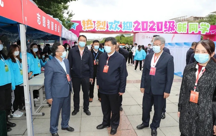 一同到达的还有来自校领导的关心。校党委书记姜治莹、校长张希在这一天来到中心校区,看望2020级新生,走访慰问迎新教职工和学生志愿者,检查迎新工作和疫情防控措施落实情况。