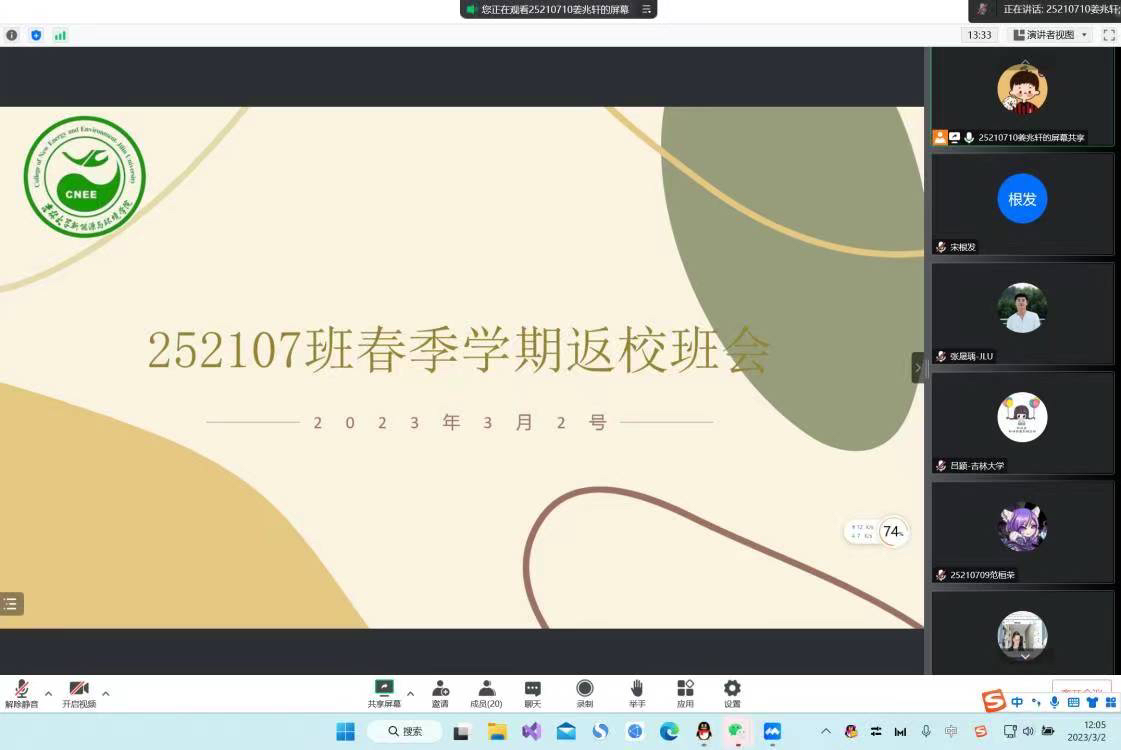 春回大地,兔跃青山,新能环21级学子迎来新学期新气象。3月2日中午,在班主任吕颖老师、张晟瑀老师的带领下,bat365官网登录入口252107班全体同学在线上召开班会。