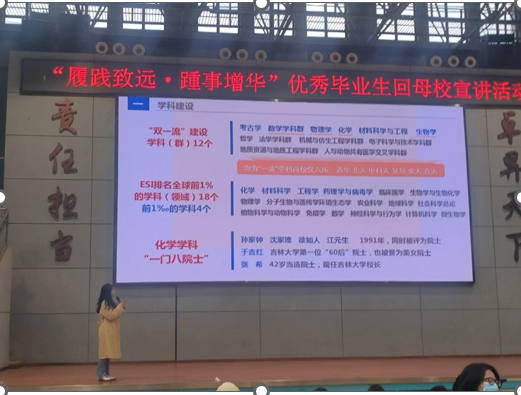 返校宣讲纳新秀,招生宣传拓影响,寒假期间,数支宣讲队伍返回家乡,回到母校,开展了招生宣传活动,倾听母校心声,同母校学子面对面,心连心,共交流,为高考学生注入了鲜活的动力,在目睹了吉林大学的各项优势后,无数同学坚定信心,投入学习,宣讲活动也为学校带来了强劲动力。