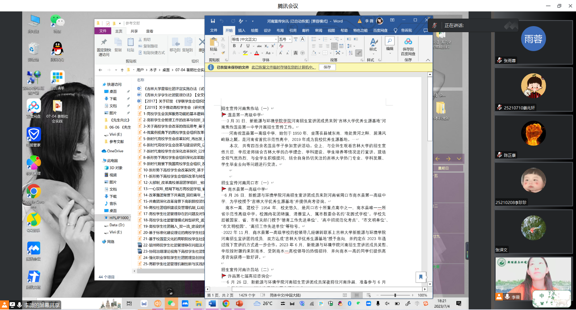 2023年7月4日bat365官网登录入口2023年暑期社会实践活动动员大会,学院暑期社会实践团队、“返家乡”社会实践成员、“鼎新实习计划”成员参与会议,院团委负责人李薇老师担任主讲人为各位同学解答社会实践注意事项。