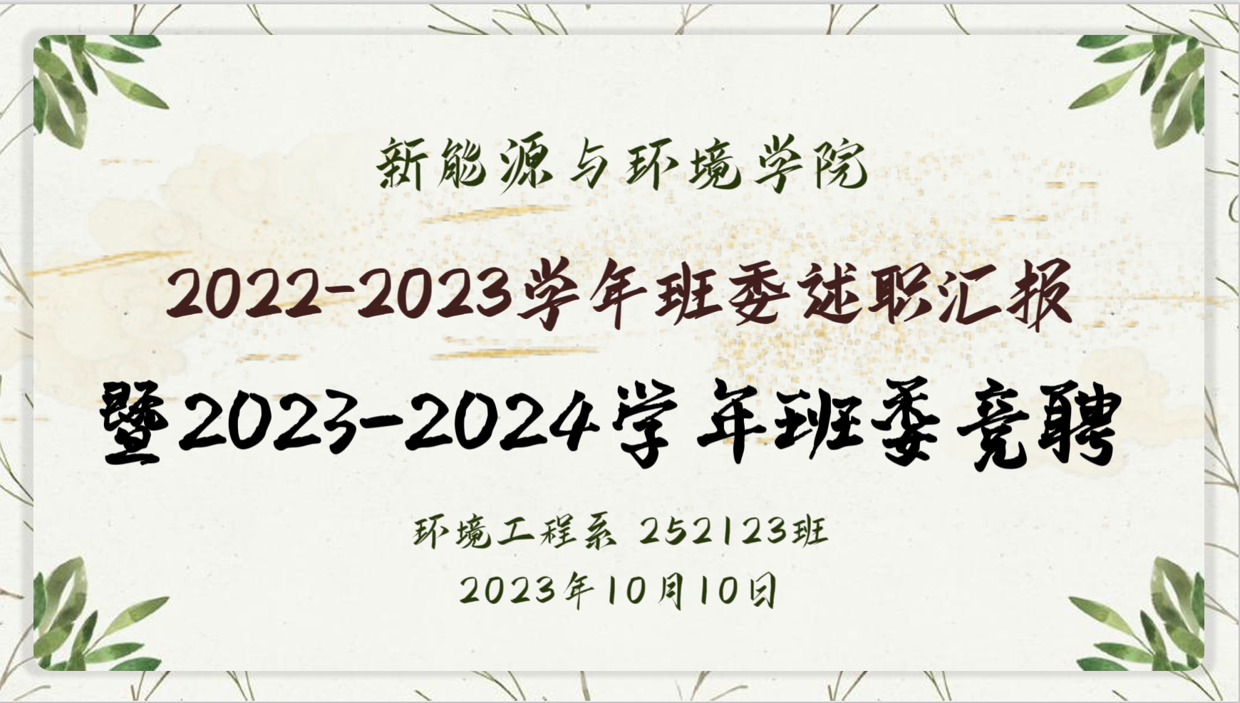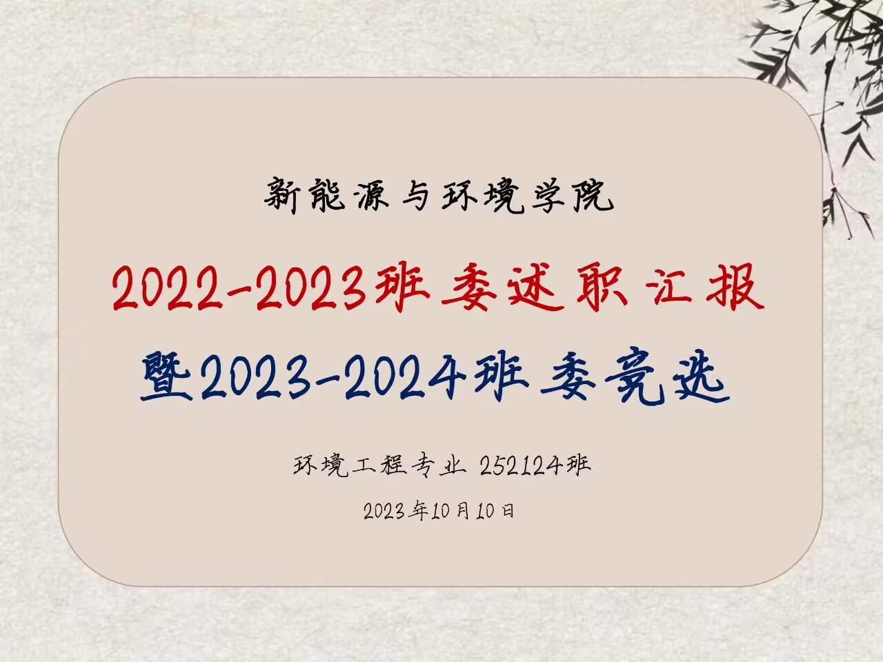 日月其迈,岁律更新。bat365官网登录入口2021级本科生于10月9日迎来了大三学年的开学周。为了及时总结过去的经验,更好地完成新学年的学习工作, 2021级八个班级先后开展了2022-2023年述职汇报暨2023-2024年度班干部竞聘主题班会,辅导员李薇参会。