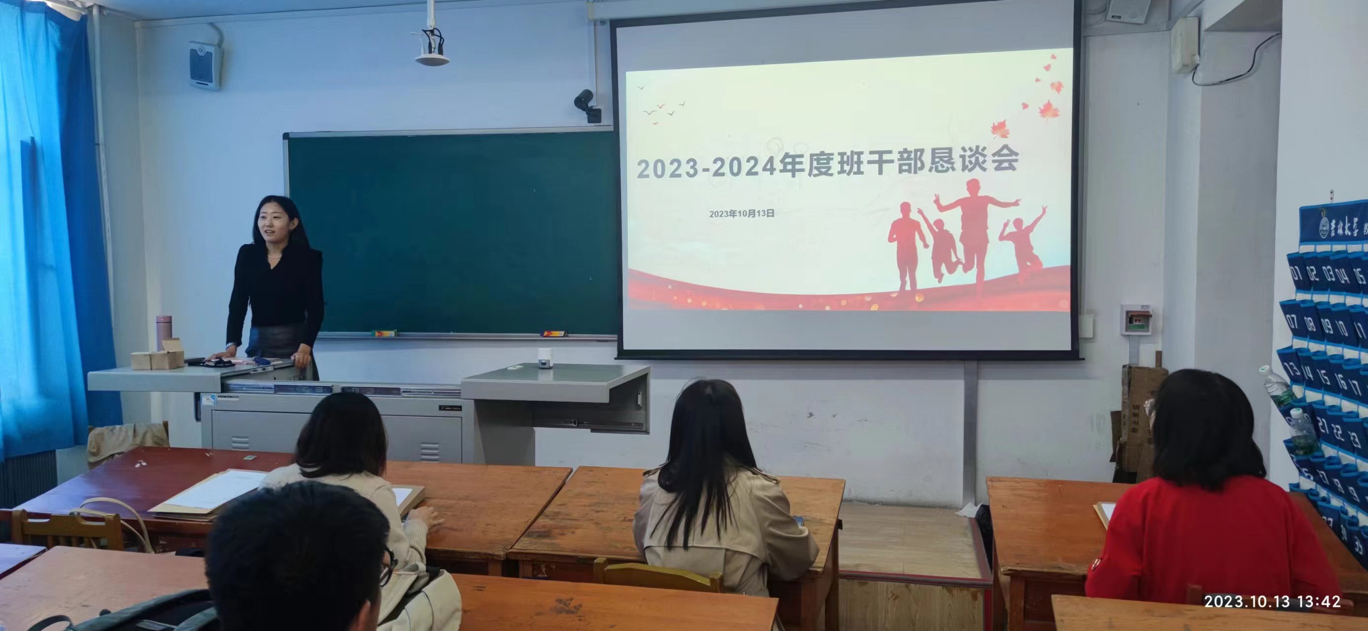 谆谆教诲发自肺腑。通过本次班干部恳谈会,学生干部提高了对于岗位职责和学生干部身份的认识,从思想站位、工作开展、纪律要求等方面全面了解工作的内容,有效提升了学生干部的工作能力,为未来班级工作打下了坚实的基础。