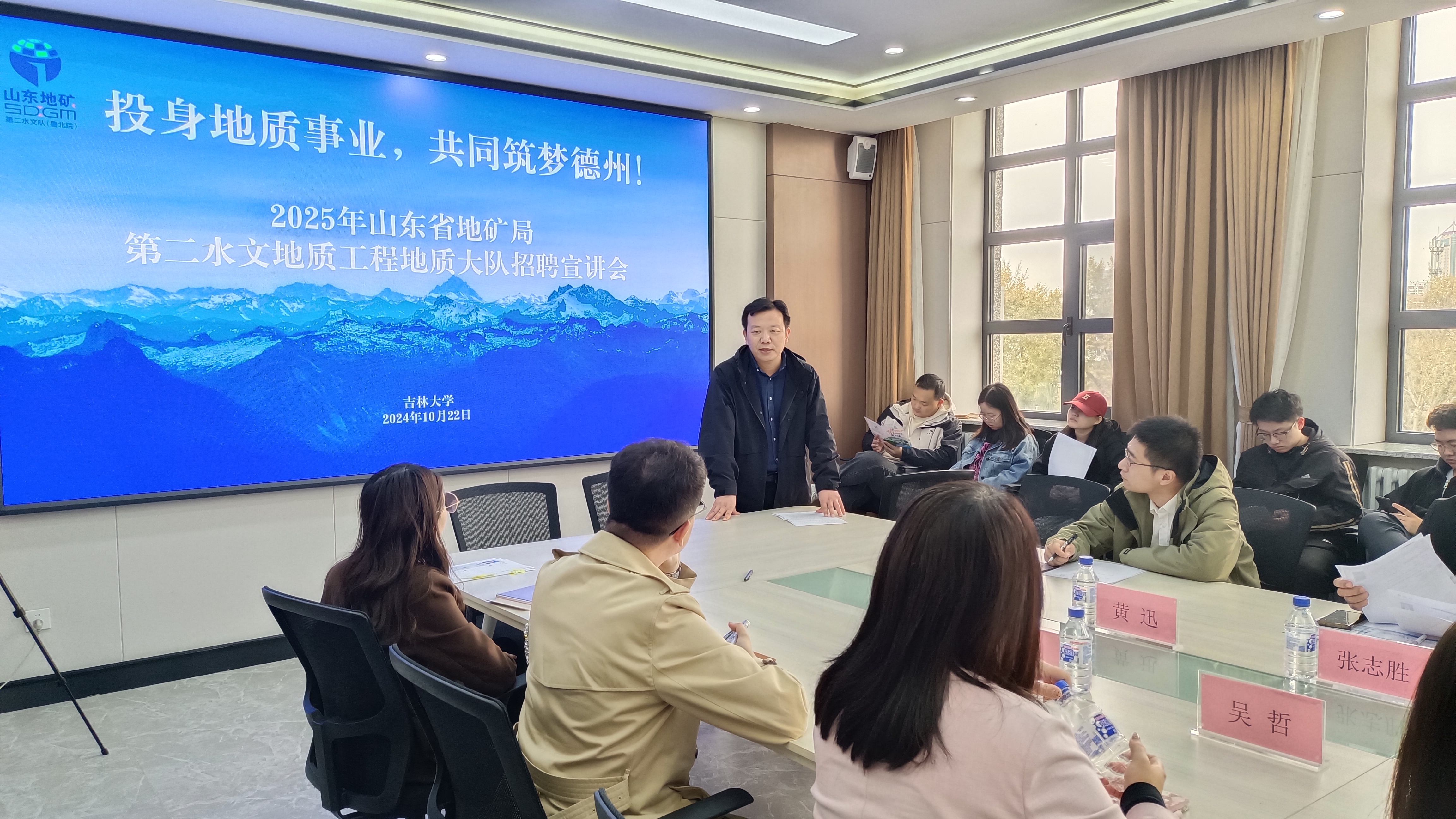 为推动求职学生高质量就业,促进校企合作,培养堪当大任的优秀青年人才。10月22日,山东省地质矿产勘查开发局第二水文地质工程地质大队党委委员、副队长张志胜一行受邀来到bat365官网登录入口,于前卫北区理化楼544会议室召开bat365官网登录入口2025届毕业生秋季专场校园招聘宣讲会。新能源与环境学院党委副书记吴哲、副书记温卓出席活动,会议由新能源科学与工程系副主任冯波教授主持。