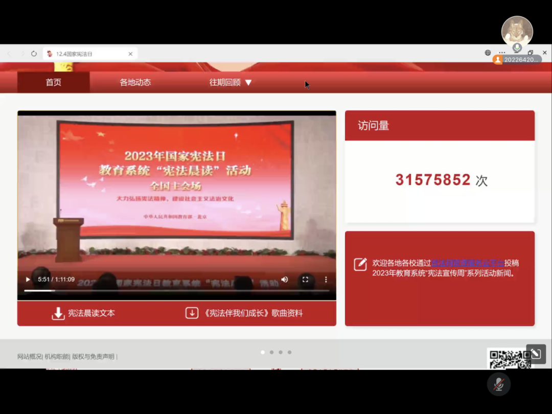 活动伊始,团支书组织了一场别开生面的“宪法晨读”活动。团支书带领同学们观看了国家宪法日教育系统“宪法晨读”活动的录播。在这个过程中,全体成员一同领略了宪法的庄重与威严,更深层次地理解了宪法作为我国根本大法的重要性。
