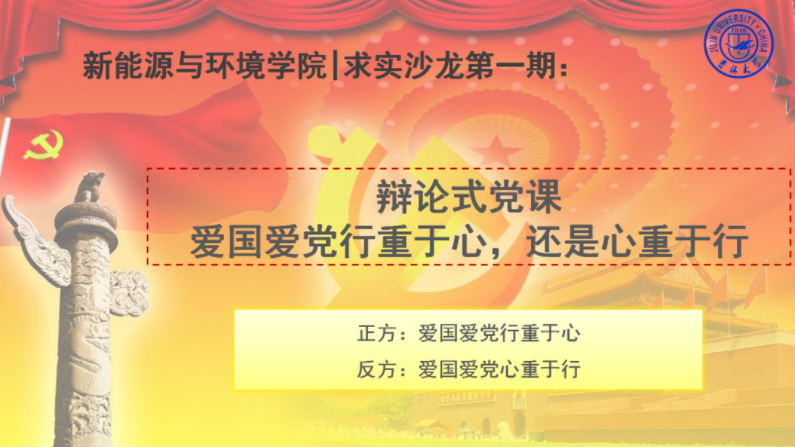为热烈庆祝中国共产党成立100周年,回顾党的百年光辉历程,颂扬党的丰功伟绩,唱响新时代主旋律,进一步激发党员干部新时代新担当新作为,2021年4月23日,bat365官网登录入口开展庆祝建党100周年“求实”沙龙第1期:辩论式党课“爱国爱党行重于心,还是心重于行”的研究生活动。