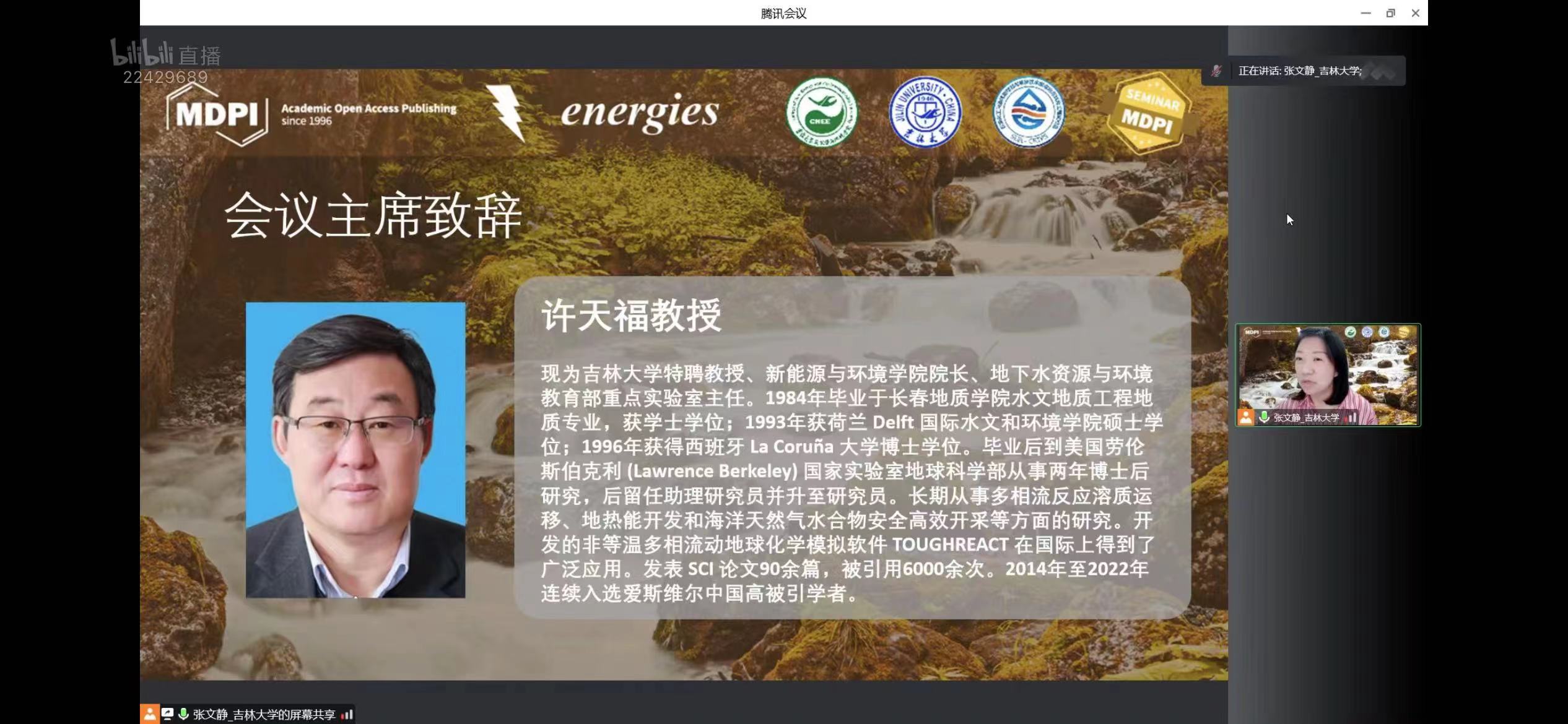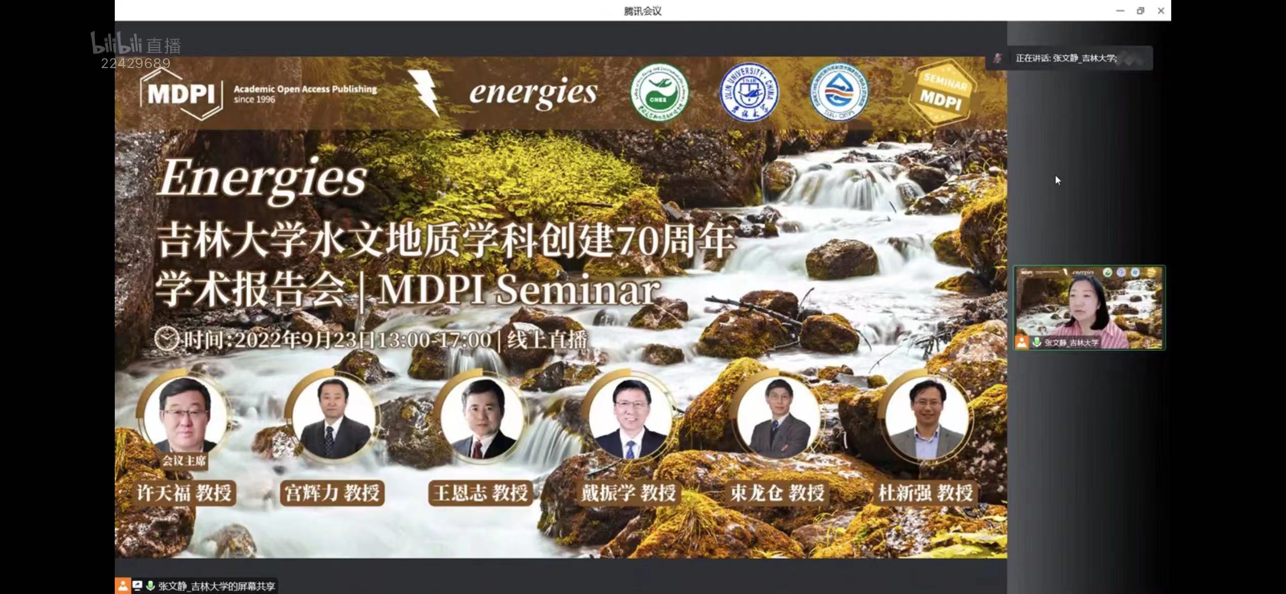 2022923日下午,bat365官网登录入口携手Energies 期刊通过MDPI线上直播平台举办了首场庆祝吉林大学水文地质学科(原长春地质学院水工系)创建70周年学术报告会。本次报告会由许天福院长担任会议主席,特别邀请:首都师范大学宫辉力教授、清华大学王恩志教授、吉林大学戴振学教授、河海大学束龙仓教授以及吉林大学杜新强教授,围绕水文地质学的相关研究进展为广大师生带来精彩纷呈的学术讲座。本次报告会由院长助理张文静教授主持,共吸引了MDPI多个直播平台相关领域专业观众累计超2万多人次的在线参与和观看。