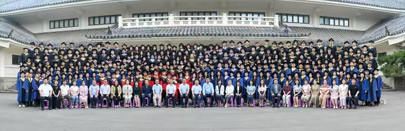 毕业典礼暨学位授予仪式在吉林大学校歌中圆满礼成。毕业生们一起喊出校训 “求实创新 励志图强”,向校园挥手告别。在《再见》的歌声中,与会领导、嘉宾、全体毕业生及其家长朋友们共同登台合影留念。