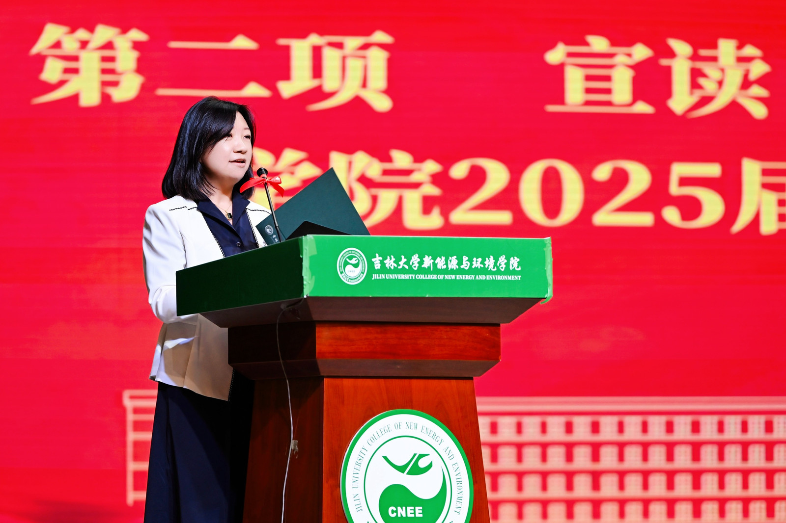 副院长秦传玉宣读《关于授予2025届毕业生博士、硕士学位的决定》,副院长辛欣宣读《关于授予2025届毕业生学士学位的决定》,本届学院共有22名博士研究生、110名硕士研究生和162名本科生顺利毕业。