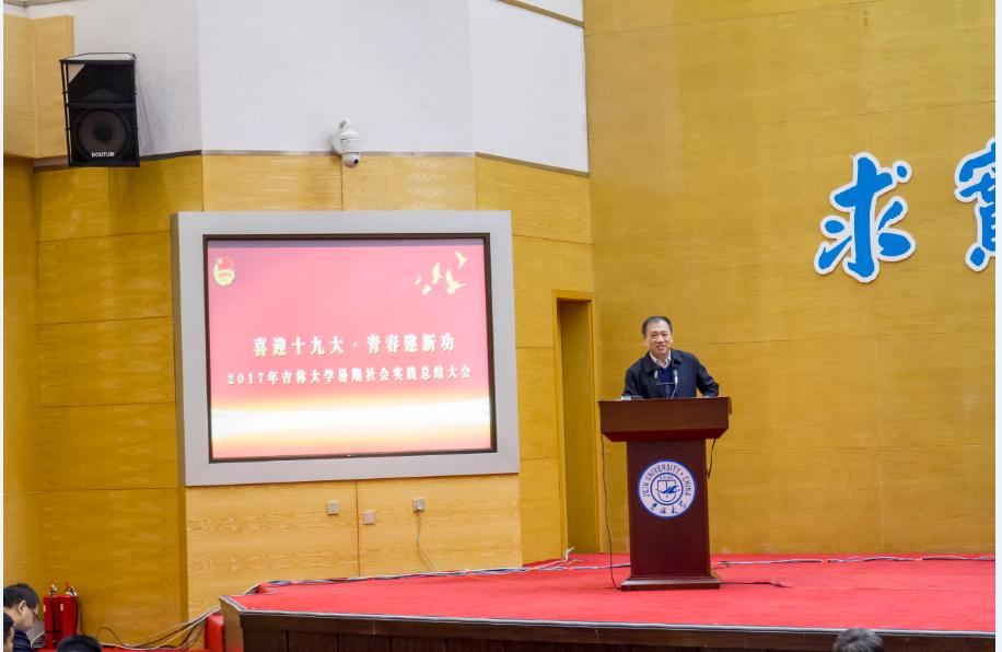 (记者:付泽鑫 霍美汐)2017年12月5日上午,吉林大学“喜迎十九大,青春建新功”2017年吉林大学暑期社会实践总结大会于中心校区东荣会议中心一楼报告厅举办,校党委书记杨振斌老师受邀出席。我院由温卓老师带队参加了本次总结大会分享经验并接受表彰。