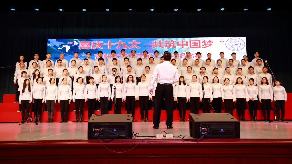 比赛在建设工程学院演唱的《吉林大学校歌》中拉开帷幕。比赛中,各参赛队伍组织有序、着装整齐、歌声铿锵有力、气势昂扬、表演独具匠心、精彩纷呈。演唱的老师和同学们激情似火,响亮、唯美的歌声响彻整个鸣放宫,歌声中,传递了他们对祖国和学校的热爱、对祖国十九大胜利闭幕的祝贺与迎接中国特色社会主义进入新时代的喜悦。地球科学学院演唱的《黄河大合唱》,在指挥的激情引领下,振奋人心的歌声仿若奔涌咆哮的黄河尽收眼底,把合唱比赛推向了高潮,落下帷幕。