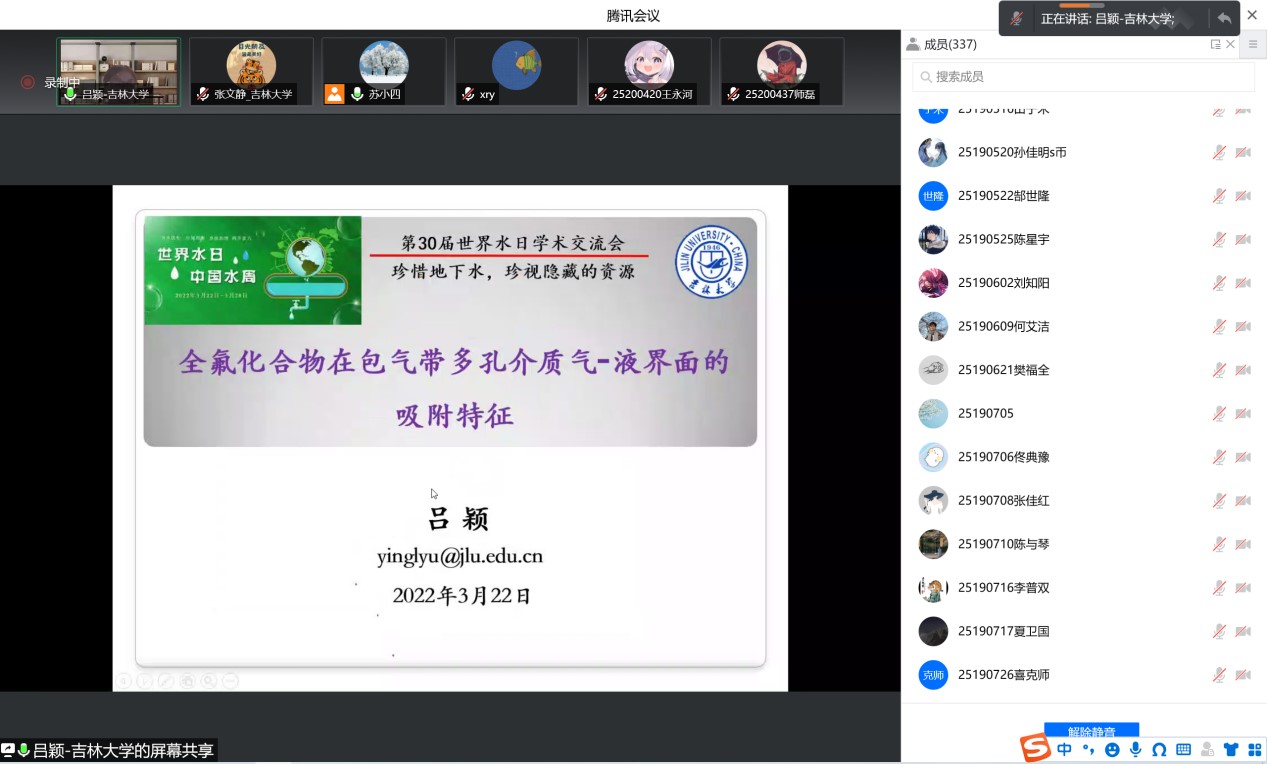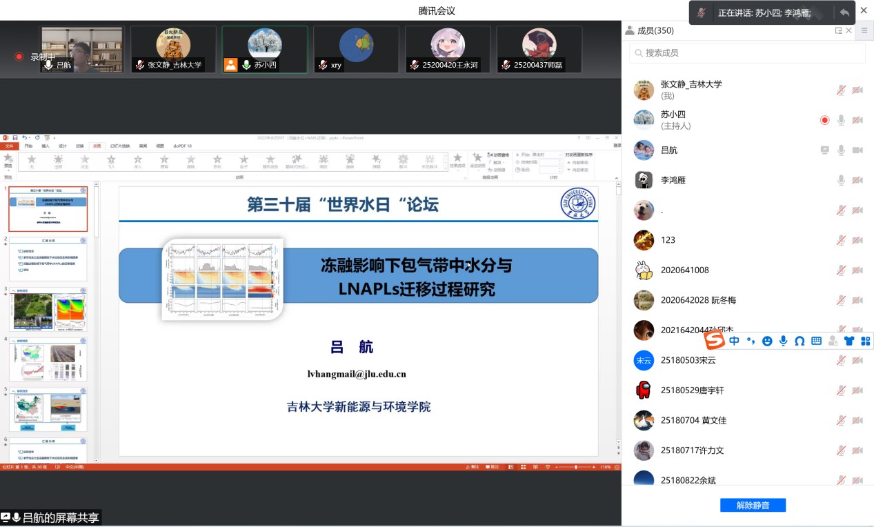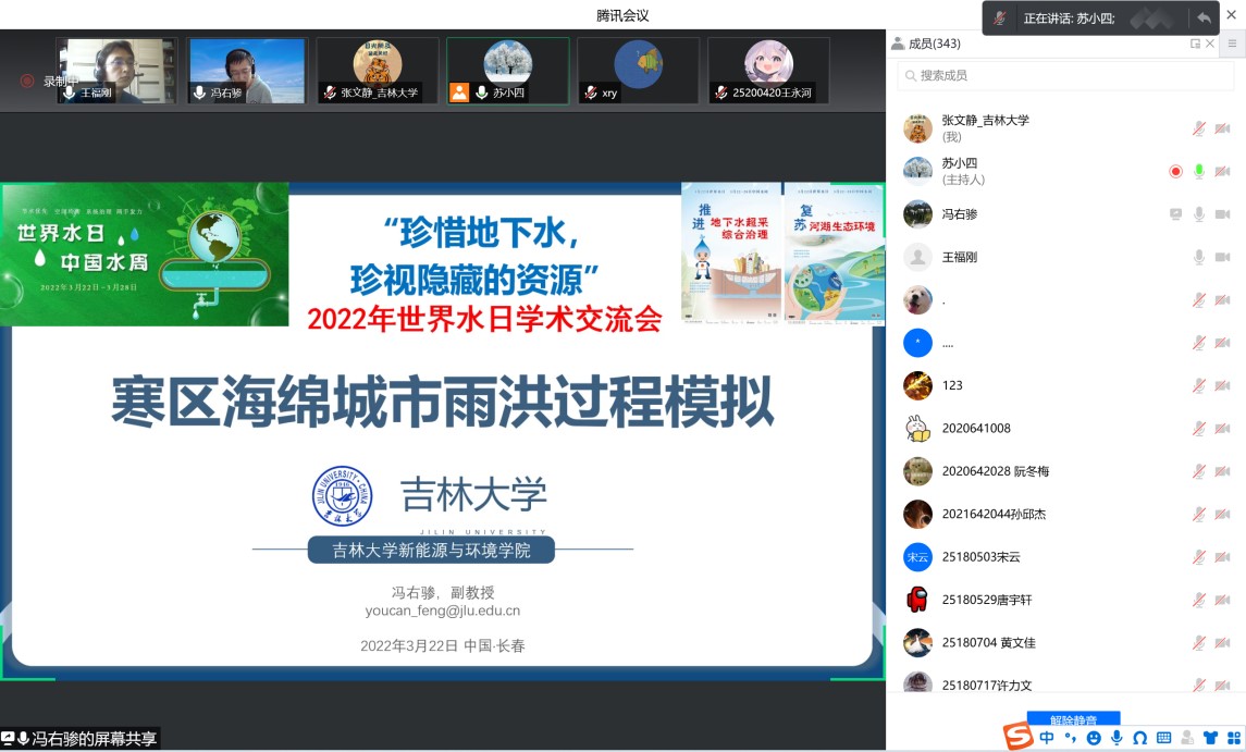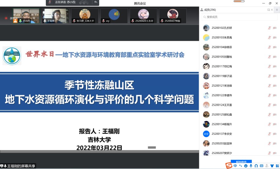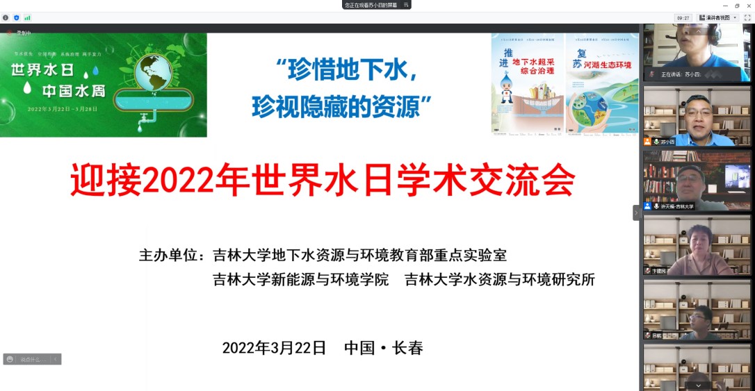 为深入落实习近平总书记“节水优先、空间均衡、系统治理、两手发力”治水思路,共同探讨地下水保护与利用的平衡之道,3月22日下午bat365官网登录入口、水资源与环境研究所与地下水资源与环境教育部重点实验室共同组织召开了迎接2022年世界水日学术交流会。会议由水资源与环境研究所所长苏小四教授主持,学院领导、相关教师和研究生、本科生同学350余人在线参加了此次学术交流。