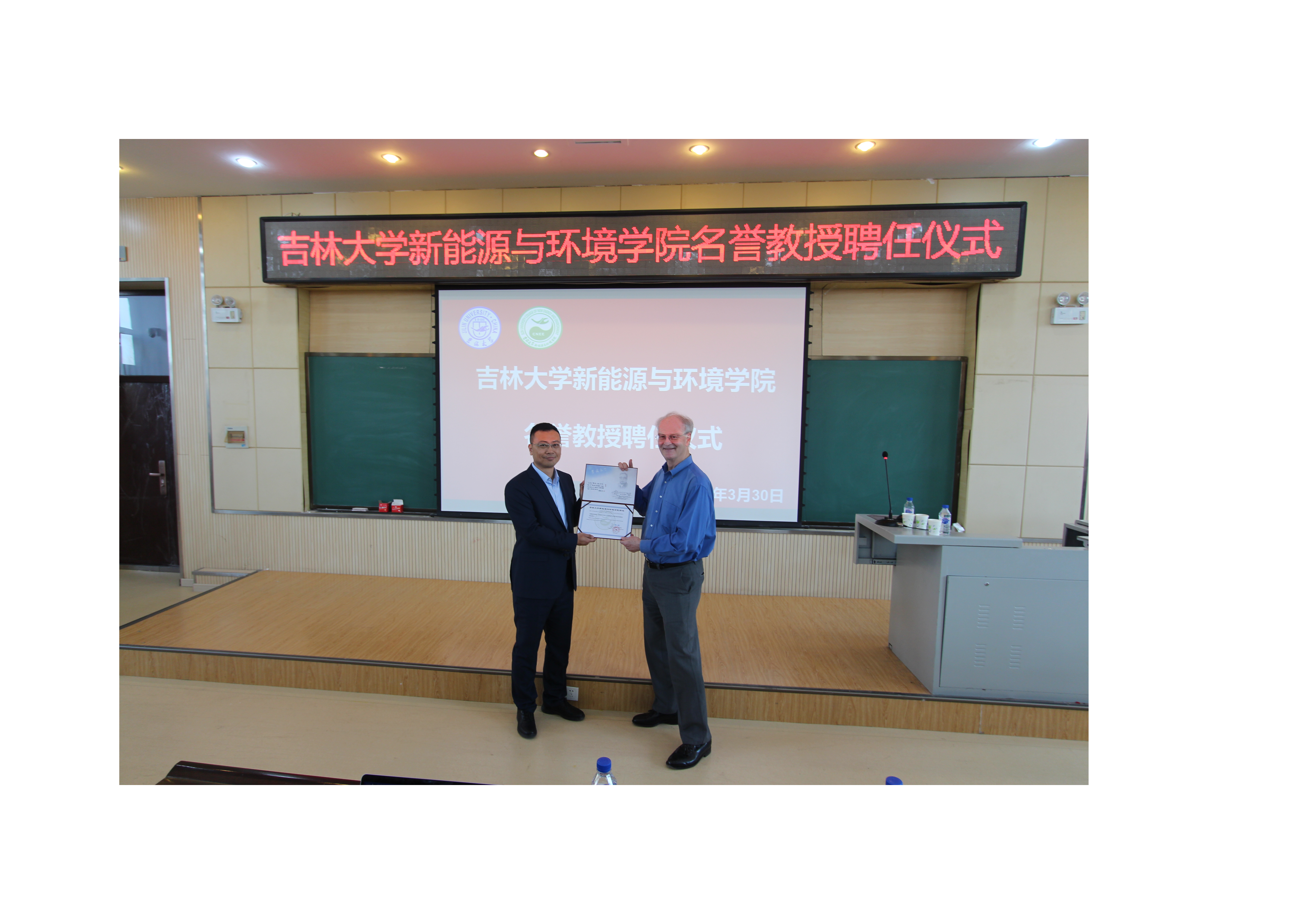 讲座结束后,举行了Rittmann教授受聘吉林大学大学bat365官网登录入口名誉教授仪式。董双石教授对Rittmann教授能够受邀来到吉林大学表示诚挚欢迎与感谢,并为Rittmann教授颁发了名誉教授聘书。