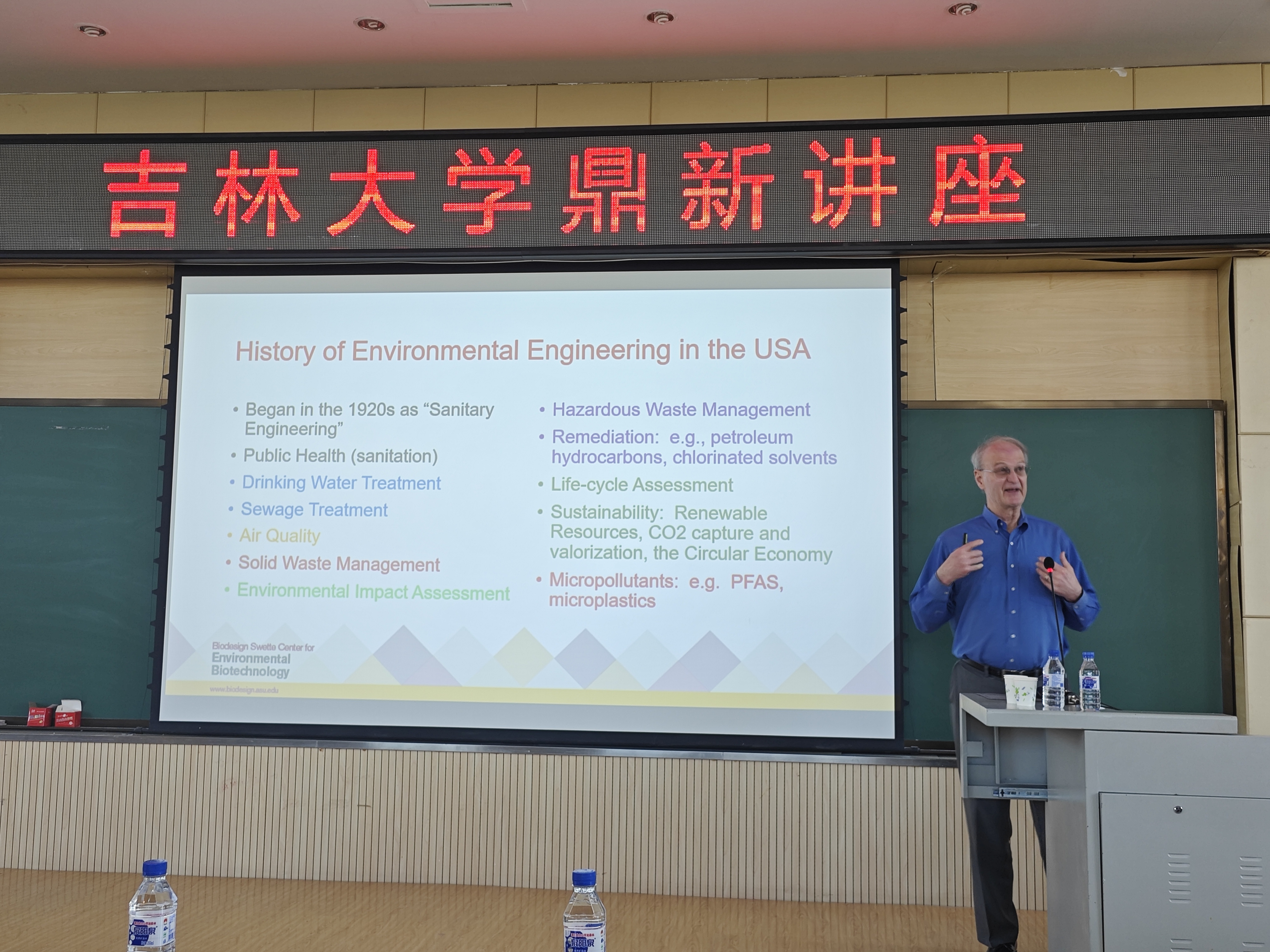 2024年3月30日下午,国际知名环境生物技术专家,美国国家工程院院士,美国国家发明家科学院院士,亚利桑那州立大学校董(Regents)教授、环境生物技术中心主任Bruce E. Rittmann教授应邀做客吉林大学鼎新讲座,以“How Graduate Students Succeed in Environmental Engineering in the USA”为题,为广大师生带来了一场精彩的学术讲座。吉林大学科研院科技管理办公室副主任、bat365官网登录入口教授董双石主持讲座。