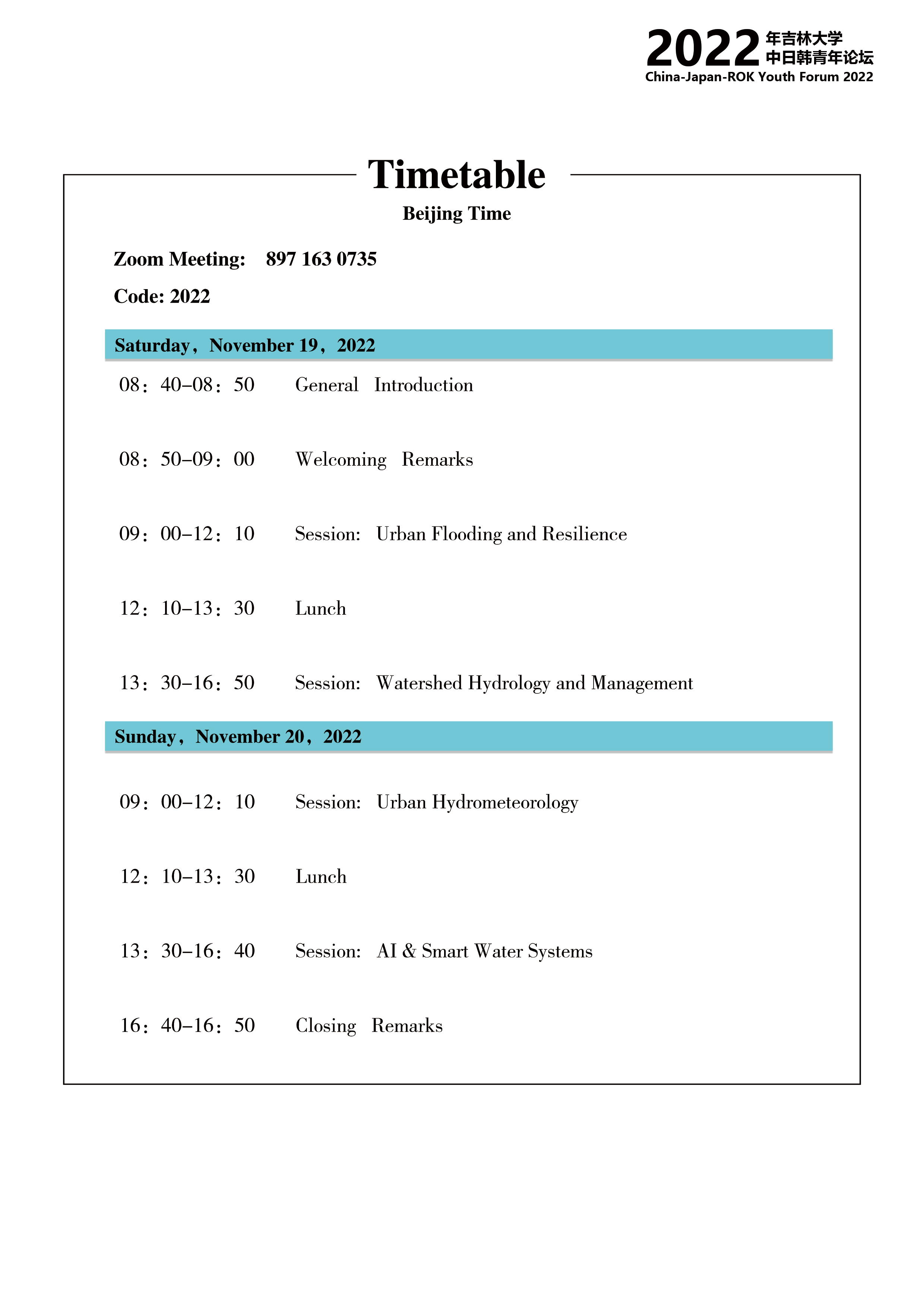 Please find the detailed agenda and meeting IDs as follows. We look forward to seeing everyone on the forum.
